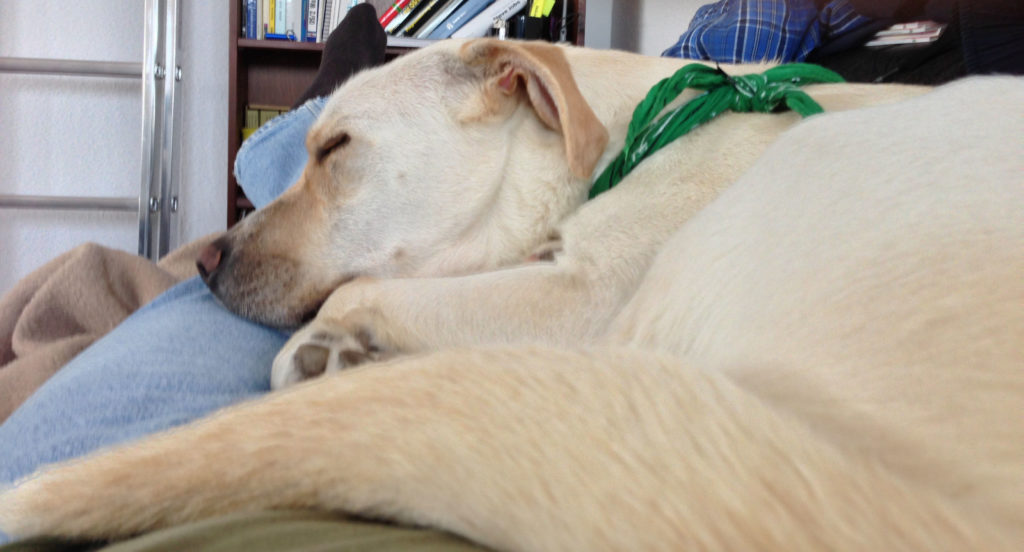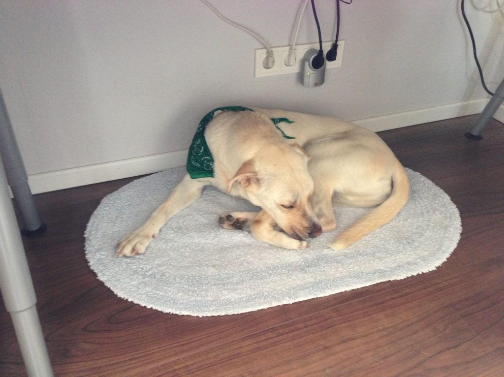 Dadurch, dass ich schon lange fast ausschließlich von zu Hause arbeite, hatte Rocko fast das gesamte Jahr ein ideales Leben: Ich war den ganzen Tag zu Hause und ging morgens und mittags mit ihm Gassi, Abends ging meine Frau. Er hatte zwei Lieblingsplätze im Arbeitszimmer, einer unter dem Schreibtisch, wo ein Unterleger für ihn bereitlag